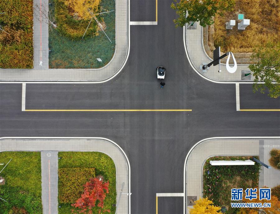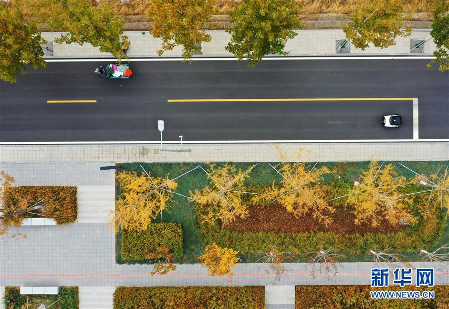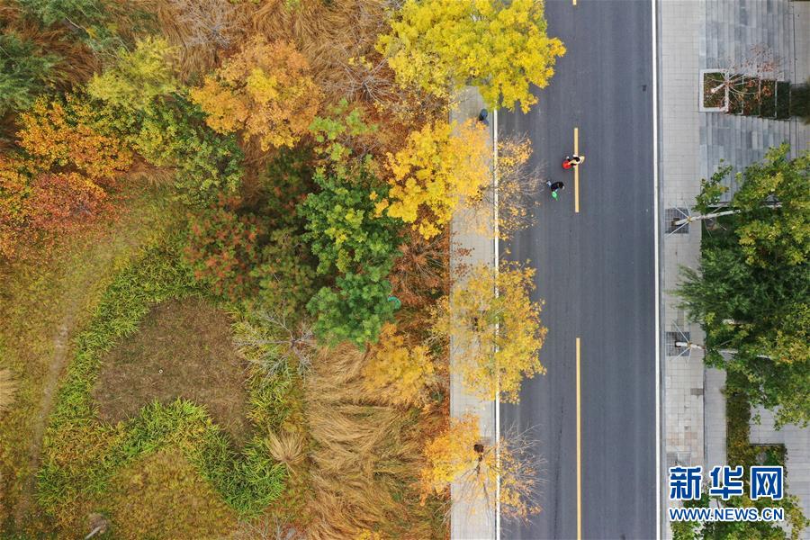 11月6日拍攝的雄安新區市民服務中心(無人機拍攝)。深秋時節的雄安新區色彩斑斕,景色宜人。新華社記者邢廣利攝