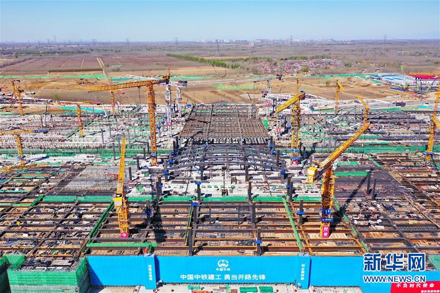 這是3月25日拍攝的京雄城際鐵路雄安站施工現場。新華社記者牟宇攝