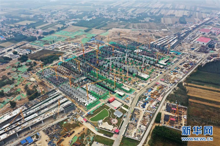 建設中的雄安站(10月10日無人機拍攝)。新華社記者邢廣利攝