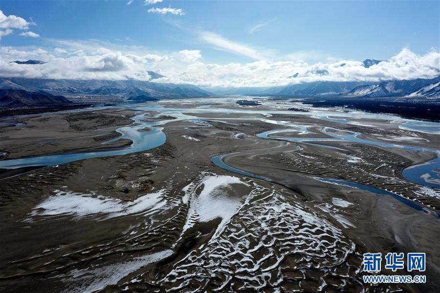 這是3月24日拍攝的雅魯藏布江雪景(無人機照片)。新華社記者晉美多吉攝