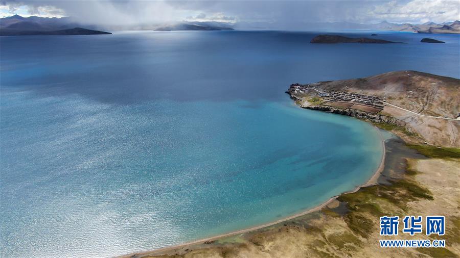 這是普姆雍錯湖邊的堆瓦村(9月19日無人機拍攝)。普姆雍錯位于西藏山南市浪卡子縣境內,海拔五千多米,在周圍雪山融水的滋潤和陽光的照耀下,美若少女。新華社記者晉美多吉攝