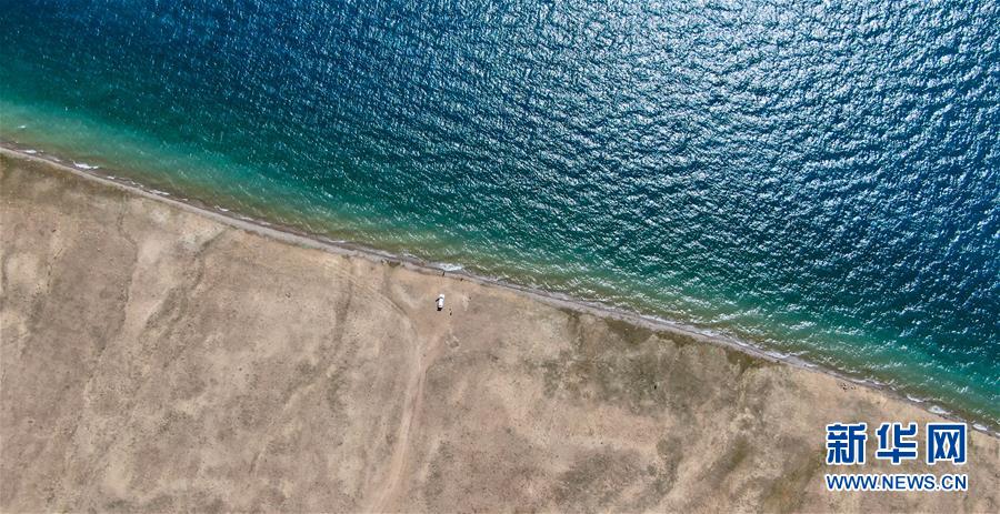 普姆雍錯湖緊挨著公路,是自駕游的理想目的地(9月19日無人機拍攝)。新華社記者晉美多吉攝