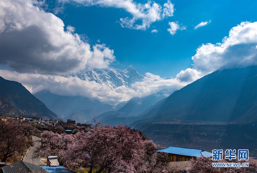 南迦巴瓦峰下盛開的桃花(4月1日攝)。新華社記者侯捷攝