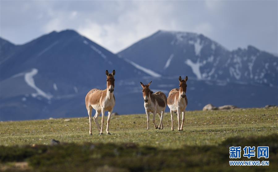 西藏札達縣香孜鄉熱布加林牧場上的藏野驢(7月29日攝)。新華社記者晉美多吉攝