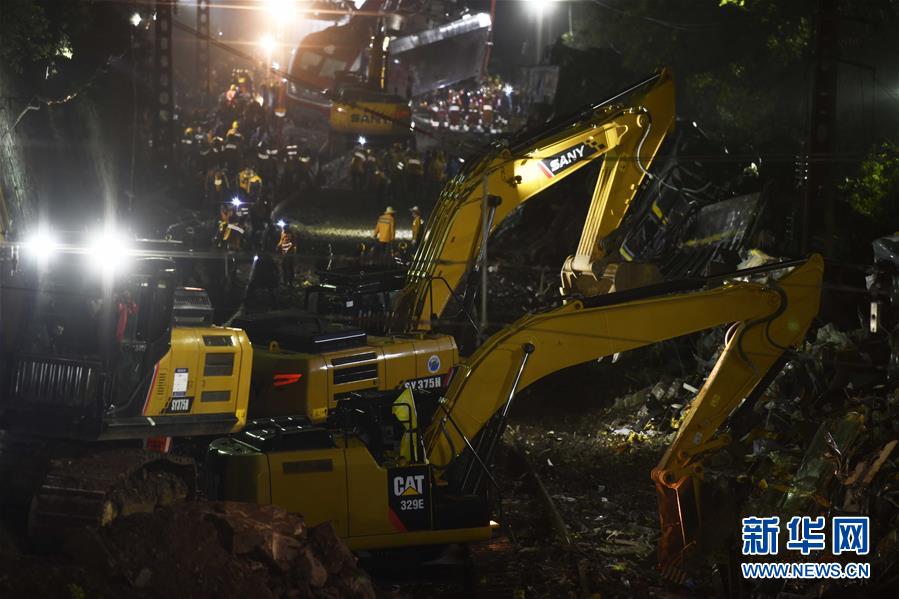 記者在現場看到,猛烈的撞擊導致列車機車頭變形偏離軌道,多節車廂傾覆;有的車廂受損嚴重,被折成“V”字形。事故路段兩旁都是山坡,護坡陡峭,現場有明顯的塌方痕跡。