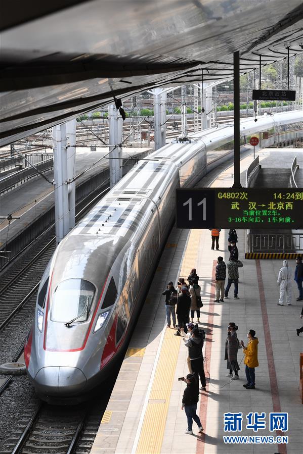 4月8日,G4802次列車駛入北京西站。新華社記者鞠煥宗攝