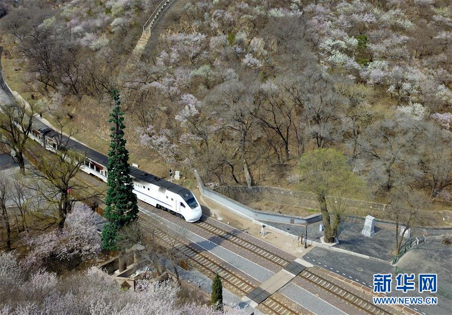 4月8日,北京青龍橋火車(chē)站附近春花盛開(kāi)(無(wú)人機(jī)照片)。 新華社記者張晨霖?cái)z