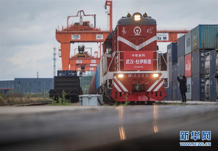 3月28日,開往德國杜伊斯堡的中歐(武漢)班列從中鐵聯集武漢中心站駛出。3月28日上午10點,中歐班列(武漢)X8015/6次運載50只集裝箱從中鐵聯集武漢中心站始發。班列將從阿拉山口出境,預計15天后抵達德國杜伊斯堡。這是自疫情防控以來,從武漢開出的首趟中歐班列,標志著中歐班列(武漢)恢復常態化運營。新華社記者肖藝九攝