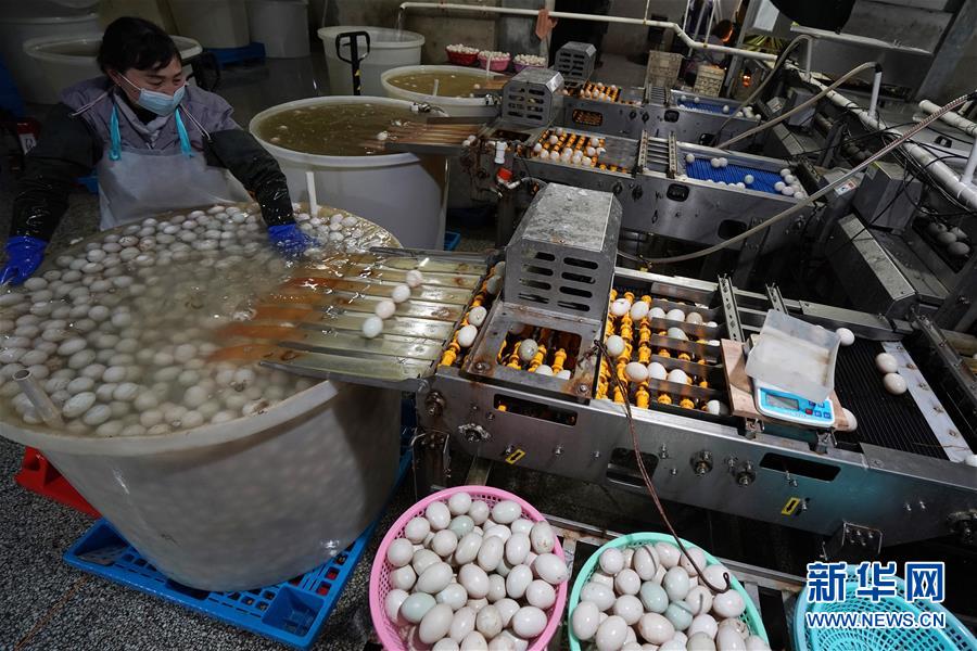 江蘇高郵鴨集團的工作人員在生產車間內清洗分揀鴨蛋(4月15日攝)。“高郵鴨蛋”是江蘇高郵的特色農業名片。近年來,當地在良種繁育、生態養殖、產品加工等方面加大力度,推動高郵鴨蛋品牌化建設,讓小鴨蛋成為帶動農戶致富的大產業。2019年,高郵市共計生產熟制鴨蛋產品近11.2億枚,年產值近17.68億元。新華社記者韓瑜慶攝