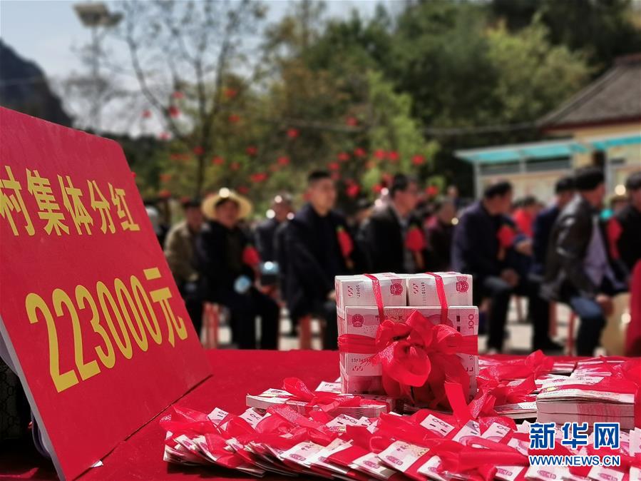 4月24日拍攝的甘肅省隴南市徽縣鐵山村公開分紅大會現場。新華社記者張新新攝