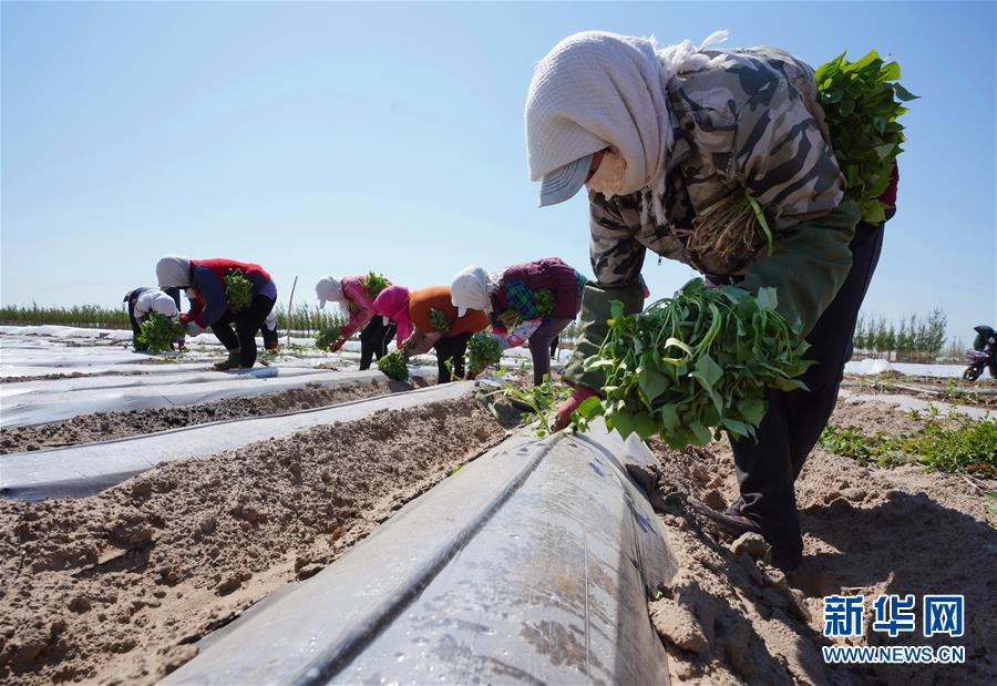 4月25日,灤南縣東黃坨鎮新戶村農民在田間栽植煙薯秧苗。近年來,河北省灤南縣利用當地土壤和氣候特點,引導農民因地制宜發展煙薯種植,取得良好效果。目前該縣煙薯種植面積達3萬多畝,每畝年收入達5000多元。新華社記者楊世堯攝
