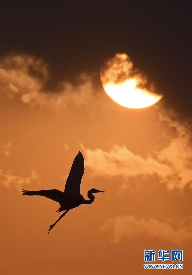白鷺在位于鄱陽湖畔的南昌市象山森林公園上空飛翔(4月27日攝)。近日,在江西省南昌市新建區象山森林公園內,已安家筑巢的大批白鷺進入繁殖旺季。在夕陽的照耀下,白鷺時而翩翩起舞,時而展翅盤旋,構成一幅美麗的自然生態畫卷。新華社記者萬象攝