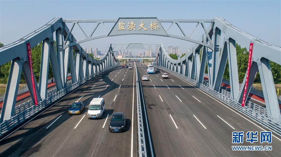 這是4月28日拍攝的江蘇省鹽城市鹽瀆大橋(無人機(jī)照片)。4月28日,位于江蘇省鹽城市的鹽瀆大橋正式通車。據(jù)介紹,鹽瀆大橋連接鹽城市鹽南高新區(qū)與河?xùn)|新城開發(fā)區(qū),通車后,將緩解附近群眾跨區(qū)繞行的問題,提供出行便利。新華社記者李博攝