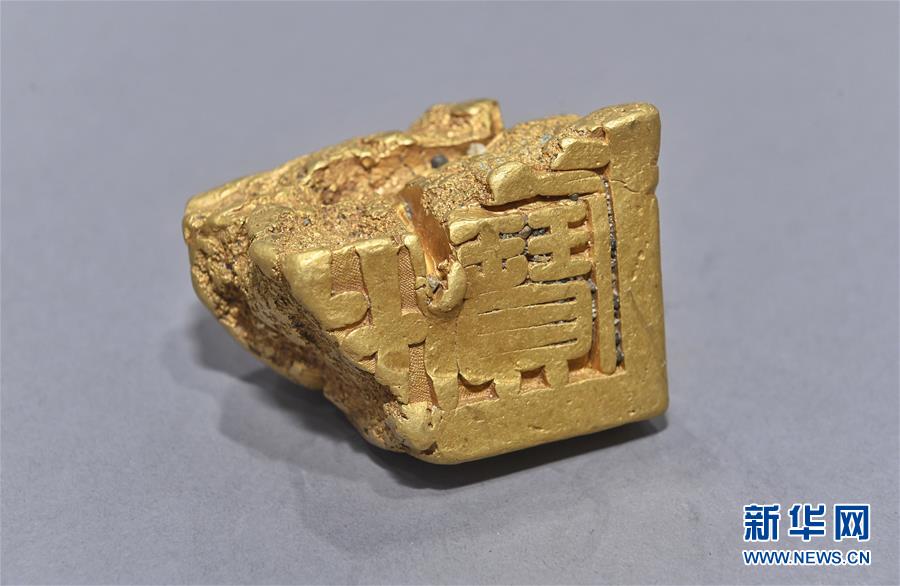 這是發掘出水的“蜀世子寶”金印局部(4月15日攝)。新華社記者劉坤攝