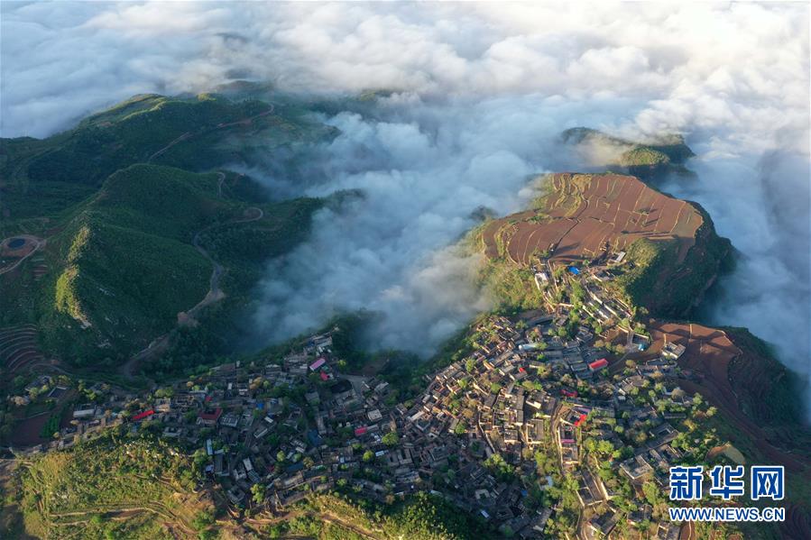 這是5月5日在河北省沙河市劉石崗鄉漸凹村拍攝的云海景觀(無人機照片)。5月5日,雨后的河北省沙河市劉石崗鄉漸凹村云霧飄渺,村莊、山巒、梯田在云海中若隱若現,構成一幅美麗畫卷。新華社記者牟宇攝