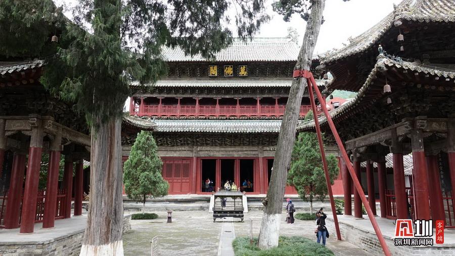 報恩寺布局結構酷似北京紫禁城,被稱為“深山故宮”。寺內古木參天,氣象森嚴,飛檐凌空,金碧輝煌。大悲殿中的用整根楠木雕成的千手千眼觀音像、華嚴藏中的轉輪經藏和泥塑蟠龍,以及遍布全寺的彩繪壁畫,都是世間罕見的藝術珍品。李仁奇攝