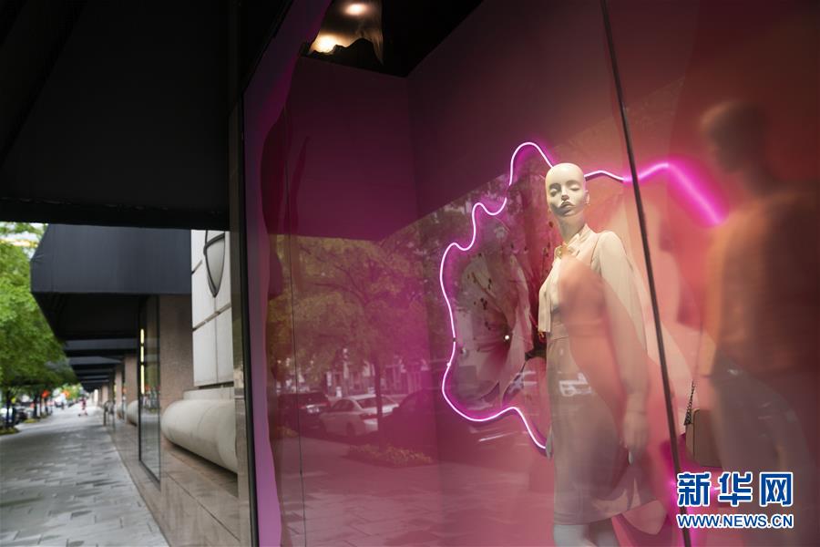 5月6日,在美國首都華盛頓,一家商場因新冠疫情暫時關閉。美國自動數據處理公司(ADP)6日公布的數據顯示,由于新冠疫情沖擊美國經濟和企業,4月美國私營部門大幅削減約2023.6萬個就業崗位。新華社記者劉杰攝