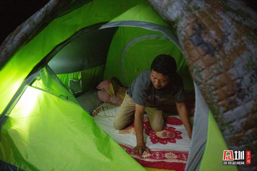 2020年5月3日,湖北省襄陽市,在南漳三道河水庫小島上,小島養蜂人趙德海忙碌了一天,晚上收拾帳篷準備在島上入睡。
