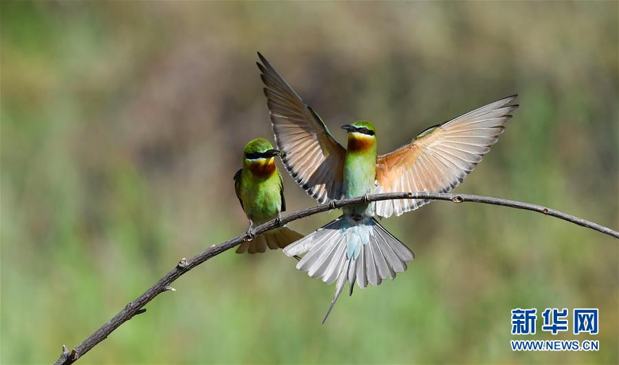 近日,百余只栗喉蜂虎和少量藍喉蜂虎來到海南省海口市西海岸多個地點棲息繁衍,為椰城增添一抹亮色。據了解,蜂虎每年春夏都會回到固定地點繁殖,由于習性特殊,蜂虎需要在新形成的沙質土坡上做窩。為此,海口市相關部門每年在蜂虎到來之前,會在蜂虎棲息地整坡清樹,為蜂虎營造良好的棲息環境。