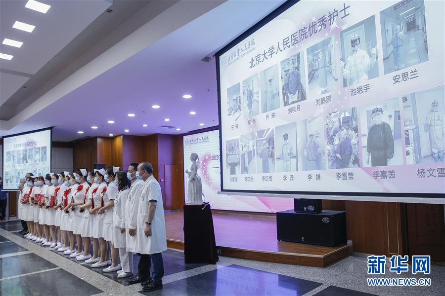 5月11日,獲獎護(hù)士在護(hù)士節(jié)活動上合影。在國際護(hù)士節(jié)到來之際,北京大學(xué)人民醫(yī)院11日舉辦慶祝護(hù)士節(jié)暨優(yōu)秀集體和個人表彰活動,并邀請援鄂醫(yī)療隊護(hù)士代表分享戰(zhàn)“疫”故事。我國今年護(hù)士節(jié)的主題為“致敬護(hù)士隊伍,攜手戰(zhàn)勝疫情”。新華社記者張玉薇攝