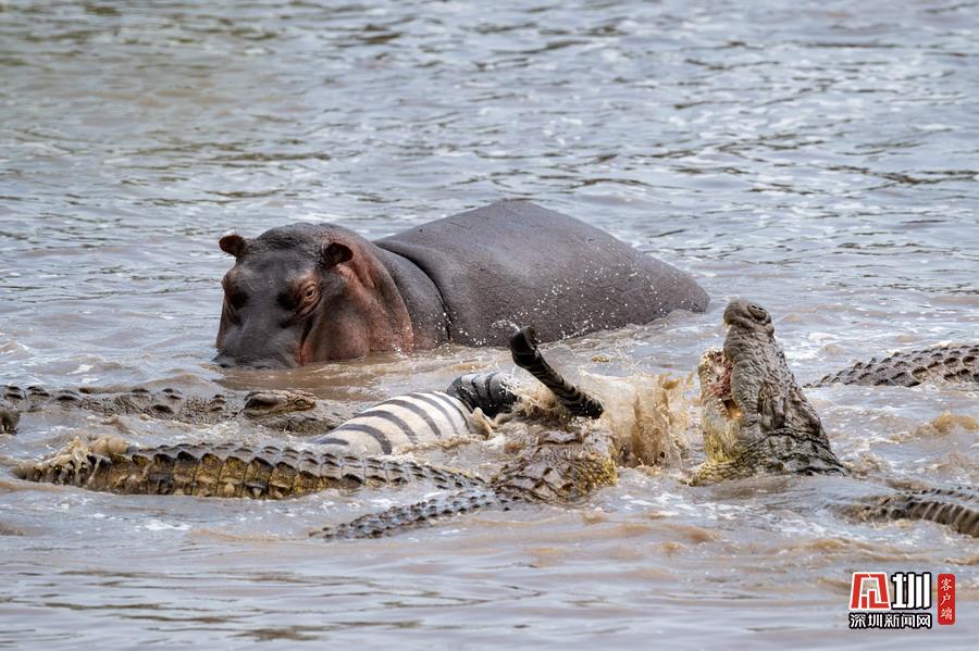 斑馬帶頭過河慘被伏擊鱷魚吞食 旁觀河馬機智逃脫