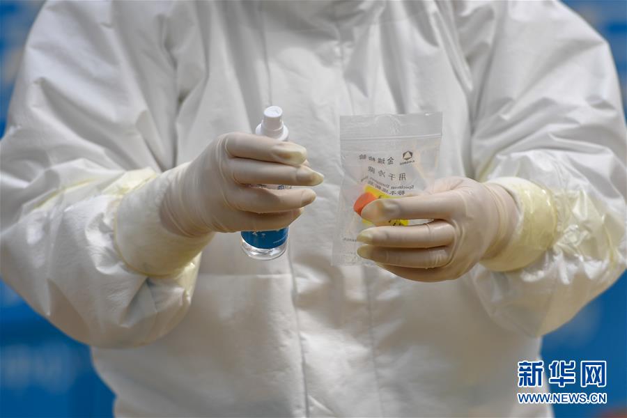 5月15日,在舒蘭市建馨園小區,工作人員為居民采集咽拭子。當日,從吉林市7家市直醫院抽調的300名護士經培訓后,全部投入到舒蘭市(隸屬于吉林市)核酸采樣工作中。為提供追溯傳染源所必需的核酸檢測相關數據,舒蘭市根據確診病例的活動軌跡,將流調和核酸檢測范圍擴大至本地確診病例和無癥狀感染者的次密接人員及一般接觸者。新華社記者張楠攝