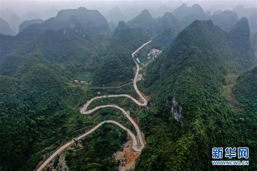 這是通向大化瑤族自治縣七百弄鄉弄平村的山路(5月15日攝,無人機照片)。新華社記者曹祎銘攝