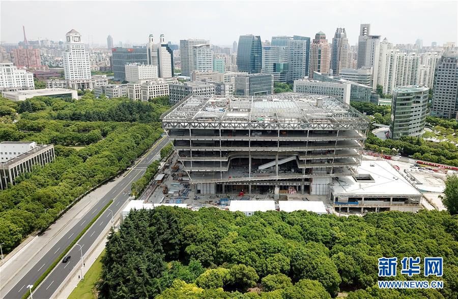 5月22日拍攝的建設中的上海圖書館東館(無人機照片)。 上海圖書館東館位于上海浦東新區,總建筑面積11.5萬平方米。目前,建設工程正在緊鑼密鼓地進行,預計將在2020年內竣工,2021年試開放運營。 新華社記者 方喆 攝