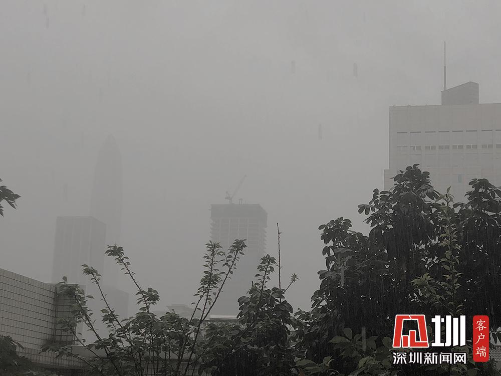 25日上午11時許,伴隨著雷聲,深圳市福田區開始下雨。