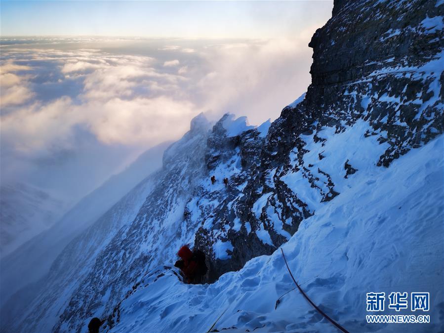 5月27日,2020珠峰高程測量登山隊正在向珠峰峰頂挺進。當日2時10分許,2020珠峰高程測量登山隊8名隊員陸續從海拔8300米的突擊營地出發,向著世界海拔最高的珠峰峰頂挺進。新華社特約記者扎西次仁攝