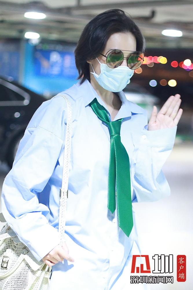 2020年5月26日,張馨予現身機場,從北京飛往上海。她墨鏡遮面霸氣撩發氣場足,穿寬松襯衫搭配領帶似清新學姐,玩下衣失蹤秀纖細美腿。