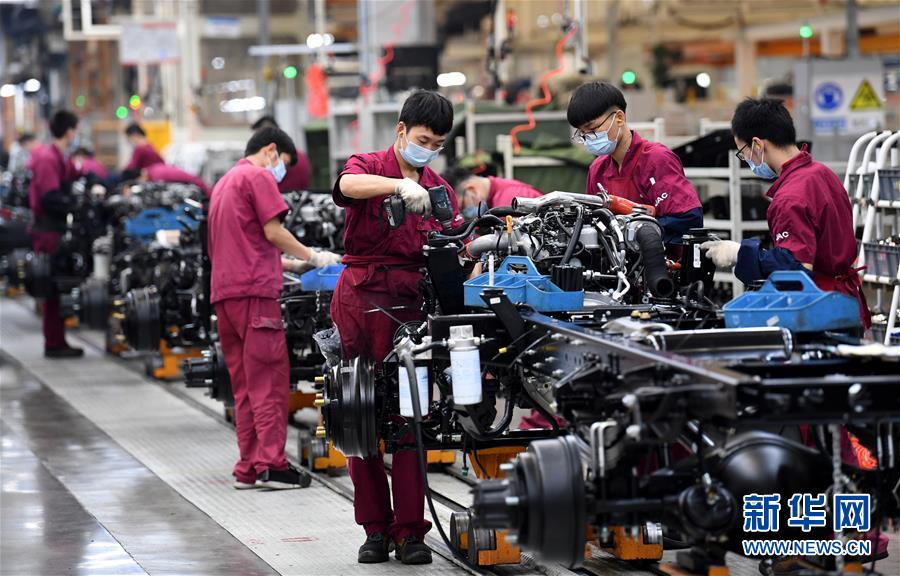 5月26日,工人在江淮汽車新港基地輕卡生產區內忙碌。當日,在位于安徽省合肥市肥西縣經濟開發區的江淮汽車新港基地輕卡生產區內,工人在做好疫情防控的同時加緊生產。新華社記者劉軍喜攝