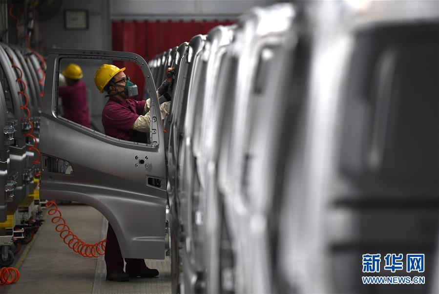 5月26日,工人在江淮汽車新港基地輕卡生產區內忙碌。新華社記者劉軍喜攝