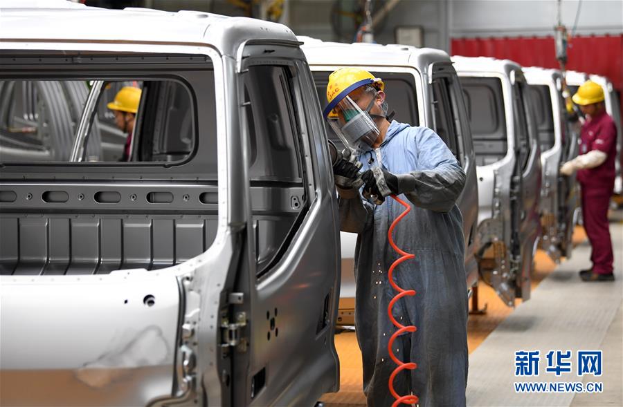 5月26日,工人在江淮汽車新港基地輕卡生產區內忙碌。新華社記者劉軍喜攝