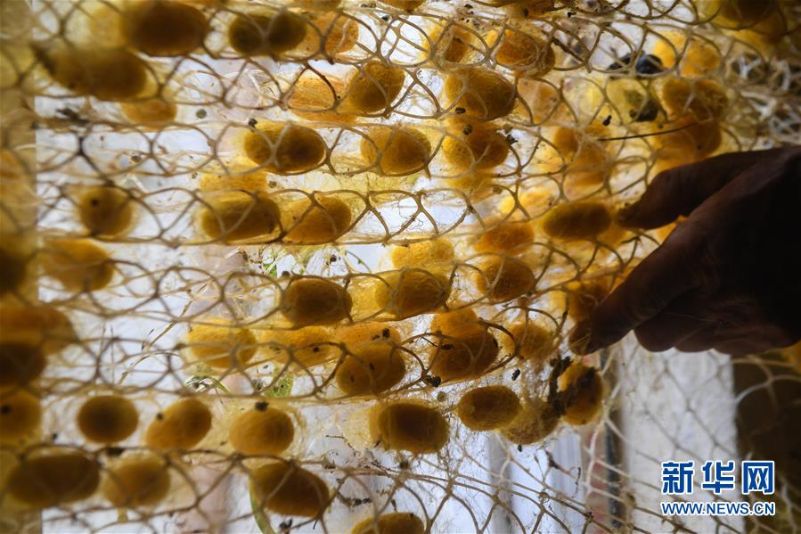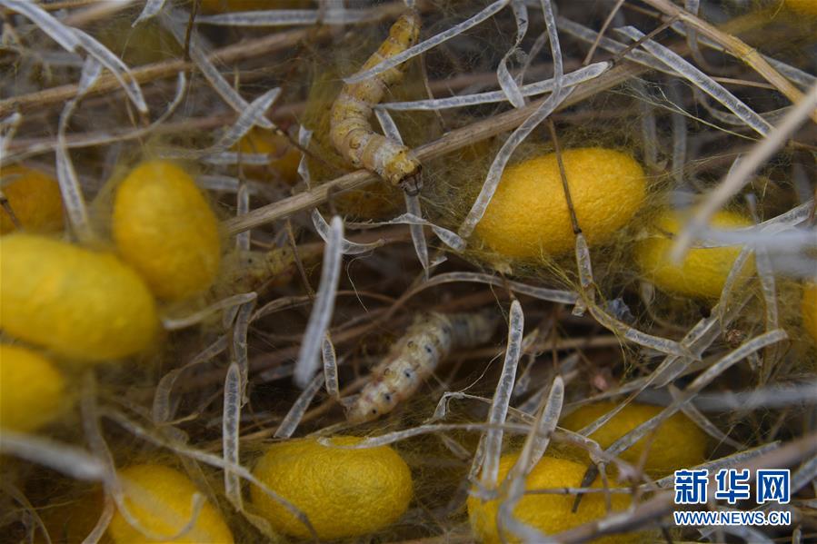 養殖的黃金蠶在吐絲結繭(5月27日攝)。新華社記者徐昱攝