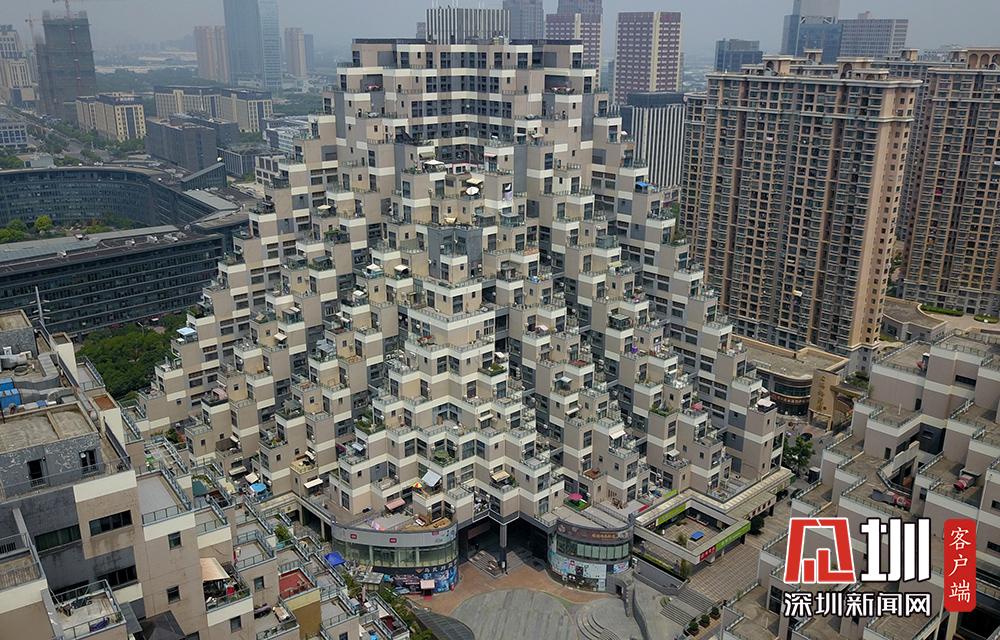 2018年7月29日,航拍江蘇省昆山市花橋國(guó)際商務(wù)城游站未來(lái)城小區(qū),空中俯瞰,由三棟樓盤組成的該小區(qū)造型奇特,高低錯(cuò)落有致,酷似“金字塔”。