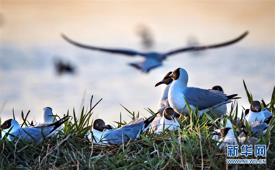 5月28日在陜西省神木市紅堿淖拍攝的遺鷗。陜西省神木市紅堿淖是中國最大的沙漠淡水湖,近年來隨著周邊生態環境改善,紅堿淖水位逐年提升,水域面積不斷擴大,每年四至八月,都會吸引大批遺鷗來此繁衍棲息,已成為遺鷗繁殖的重要基地。新華社記者陶明攝