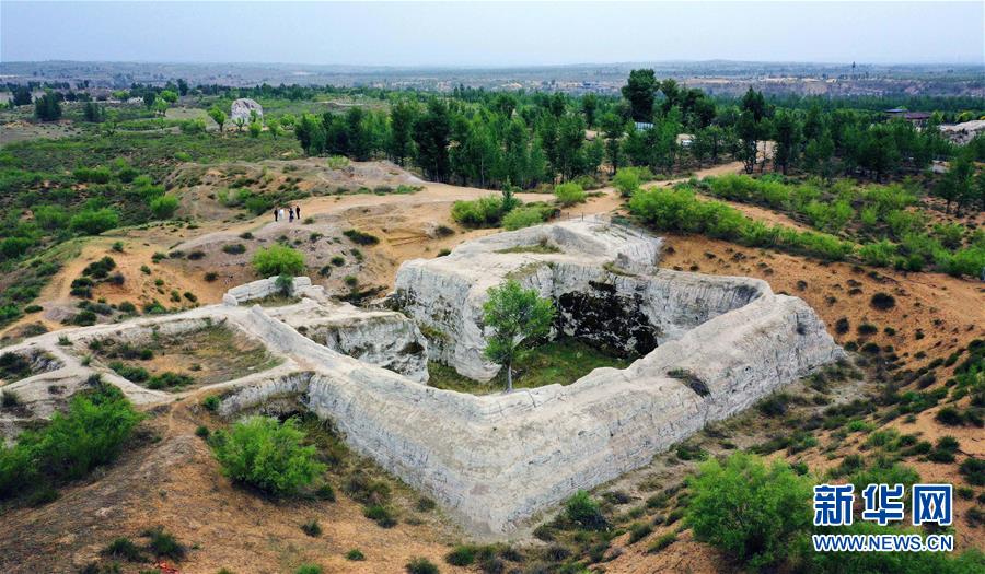 統萬城西門及甕城遺址(5月30日攝,無人機照片)。新華社記者劉瀟攝