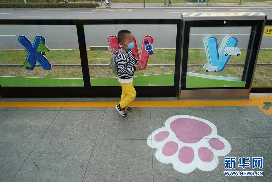 5月31日,一名小乘客在南京市建鄴區河西新城有軌電車友誼街站候車。新華社記者季春鵬攝