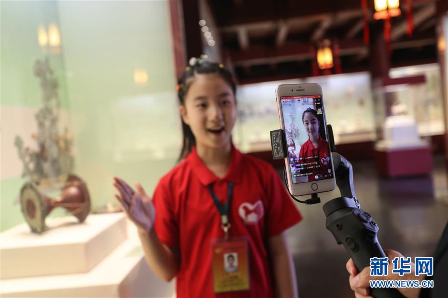 6月1日,小志愿者于冰清在沈陽故宮博物館內通過直播向觀眾講解“古趣童心——清宮文物中的兒童世界”展覽。當日是“六一”國際兒童節,沈陽故宮博物館的小志愿者利用網絡直播的形式,帶領小朋友“云”逛沈陽故宮博物館,并向小朋友們詳細講解正在館內展出的“古趣童心——清宮文物中的兒童世界”展覽。新華社記者潘昱龍攝。