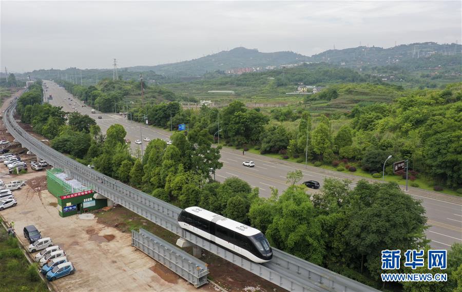 6月3日,一臺“云巴”在專用運(yùn)行軌道上進(jìn)行調(diào)試(無人機(jī)照片)。近日,重慶市首條“云巴”示范線項(xiàng)目在重慶璧山區(qū)正式亮相。此次發(fā)布的“云巴”采用電能驅(qū)動,具有轉(zhuǎn)彎半徑小、爬坡能力強(qiáng)、噪音低、安全性高、建設(shè)成本低、建造周期短等優(yōu)勢,能為乘客提供更智能、舒適、便捷的出行體驗(yàn)。據(jù)介紹,璧山區(qū)“云巴”示范線項(xiàng)目自2019年8月開建,線路正線全長15.4km,共設(shè)車站15座,預(yù)計2020年9月全線通車。新華社記者劉潺攝。
