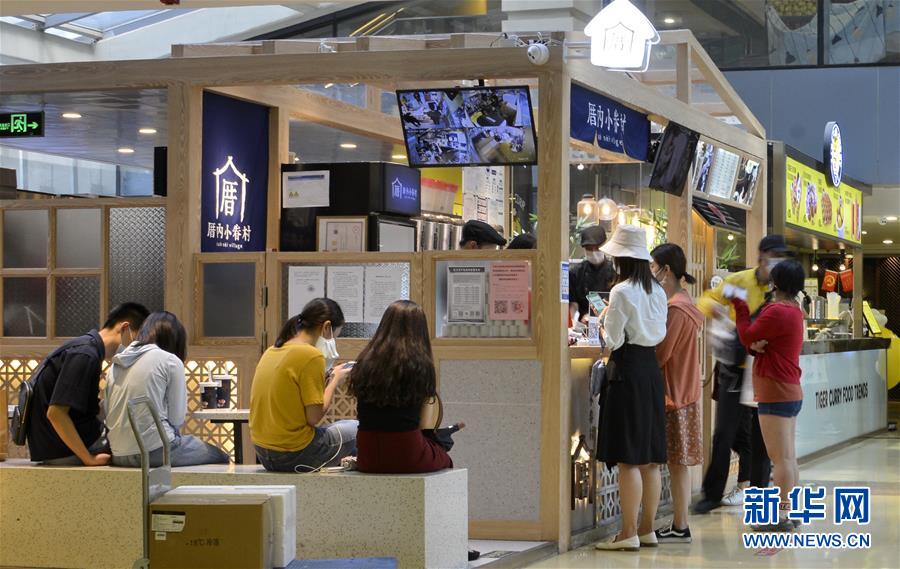 6月3日,市民及游客在西單大悅城商場內購買食品。近日,游人和市民紛紛來到北京市的王府井、西單、前門大街等著名商業街購物休閑,這些老商業街開始逐步恢復昔日的繁華。新華社記者李欣攝。