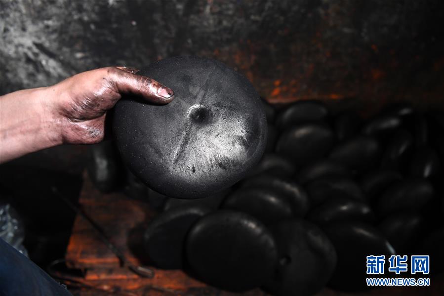 5月21日,安徽省非物質文化遺產徽墨代表性傳承人項德勝在進行古法煉煙。傳統徽墨制作工藝中,第一道工序就是煉煙。這一過程收集來的油煙是徽墨制作中最為重要的原材料。新華社記者張端攝。