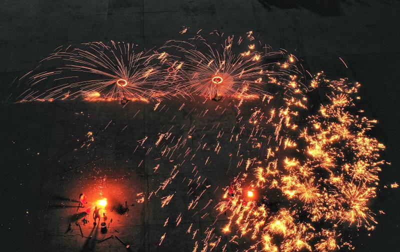 2020年6月7日晚8時許,吉林長春青岡立交橋附近,神韻打鐵花表演隊改進了傳統單一的擊打鐵花的形式,增添了空中轉花、高空散花、鋪地印花等多種花型。一柱鐵花沖天,在空中盤旋,朵朵銀花綻放給觀眾帶來了震撼的視覺享受。