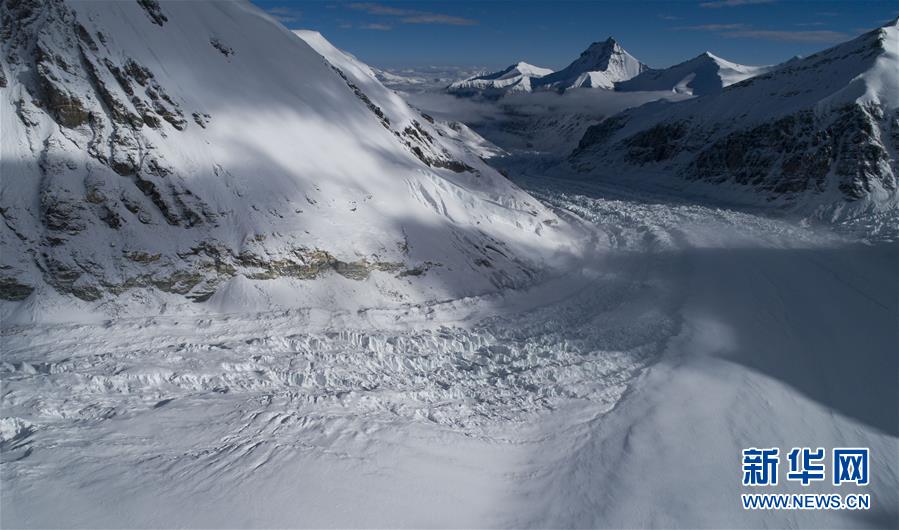 這是珠峰腳下的絨布冰川(無人機照片,5月22日攝)。從空中俯瞰珠穆朗瑪峰北坡,生機勃勃的高原濕地、蜿蜒曲折的盤山公路、壯麗秀美的絨布冰川,還有安靜的村莊和熱鬧的登山營地,共同構(gòu)成一幅壯美畫卷。新華社記者晉美多吉攝