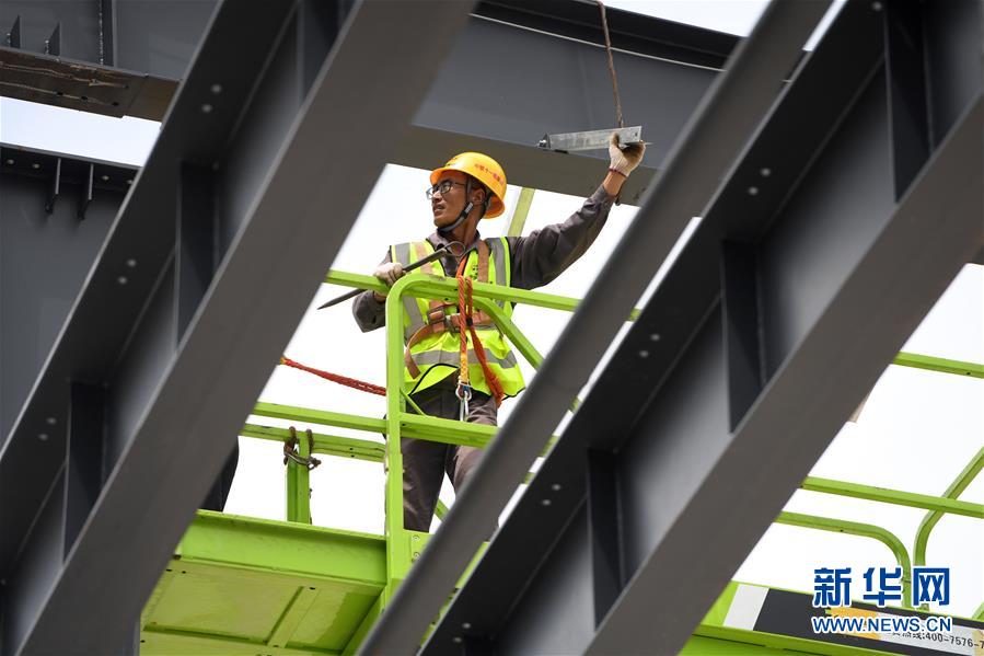 6月9日,工人在位于重慶市巴南區的渝湘高鐵重慶段建設工地現場作業。