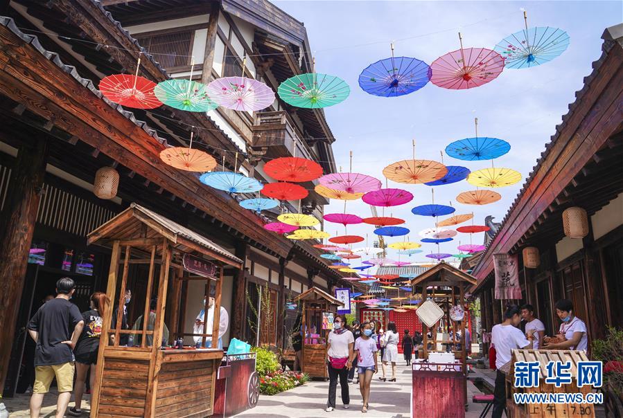 6月13日,市民在長春市世茂蓮花山小鎮寬厚里商街參觀游覽。當日是“文化和自然遺產日”。吉林長春首屆蓮花山消夏生活節在世茂蓮花山小鎮舉行。活動將非遺展示與假日消暑休閑相結合,讓游人在“古色古香”的油紙傘巷中品傳統文化魅力,享夏日休閑愜意。新華社記者許暢攝。