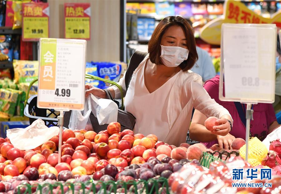 6月14日,在北京市海淀區的超市發雙榆樹店,市民在挑選水果。當日,位于北京市海淀區的超市發雙榆樹店在做好新冠肺炎疫情防控工作的前提下,保障市場農產品供應。 據了解,超市發雙榆樹店所有蔬菜、水果均來自于超市發自有配送中心的蔬菜直采產地,配送中心從13日起已經連夜增加京郊、河北、河南等產地的采收量,緊急加車配送,確保蔬菜供應。與此同時,糧、油、米、面等民生必需品供應充足,價格穩定。   新華社記者 任超 攝