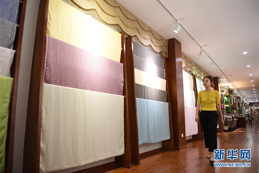 6月12日,天運夏布會館負責人唐藝在檢查展廳內展示的夏布樣品。新華社記者 唐奕 攝
