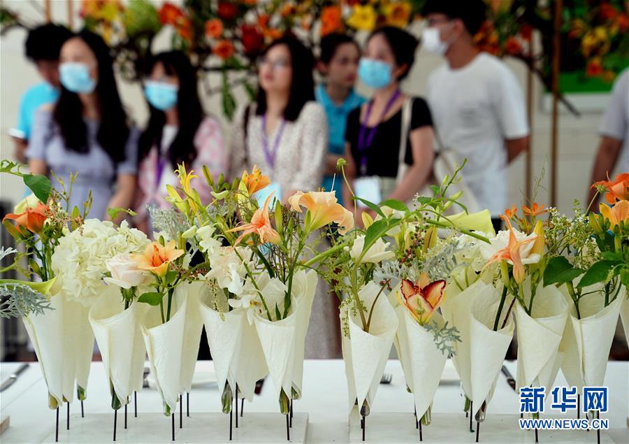 這是開幕式現場展示的大學生設計創作的萱草花小花束(6月13日攝)。6月13日,“2020中國(上海)萱草文化節”在上海應用技術大學開幕,校園里數百個品種的萱草花競相綻放,萱草科研推廣、萱草文化交流等多項活動同時舉行。新華社記者 劉穎 攝